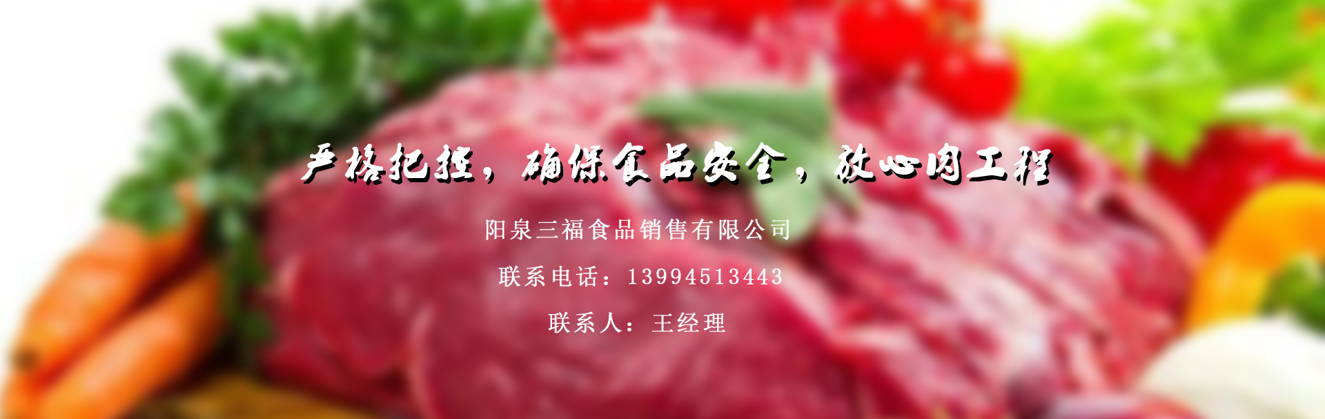 陽(yáng)泉三福食品銷(xiāo)售有限公司成立于二零零六年九月,位于陽(yáng)泉市城區(qū)桃南中路28號(hào),資質(zhì)為一般納稅人,是政府批準(zhǔn)的合法具有外調(diào)肉類(lèi)的單位之一。在2012年獲得中國(guó)人民銀行頒發(fā)的AAA機(jī)構(gòu)信用代碼證。現(xiàn)主要提供以下供貨渠道:     1、 冷鮮肉類(lèi)的批發(fā)     2、 凍貨...